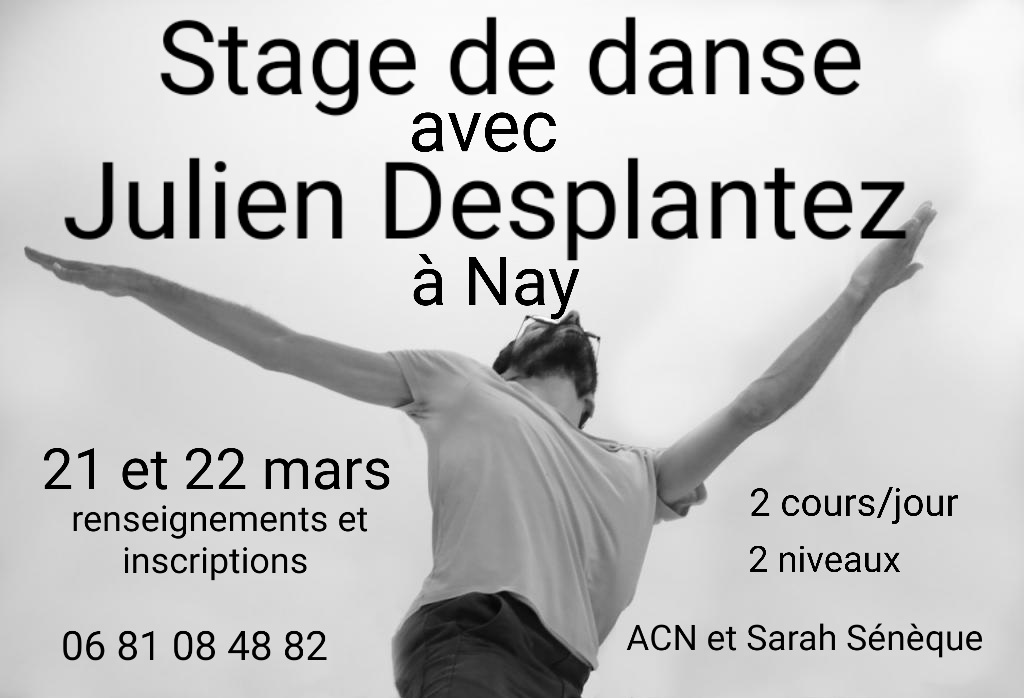 Lien sur Helloasso pour le règlement : https://www.helloasso.com/associations/ateliers-culturels-de-nay/adhesions/stage-danse-julien-desplantez-21-et-22-mars-2026